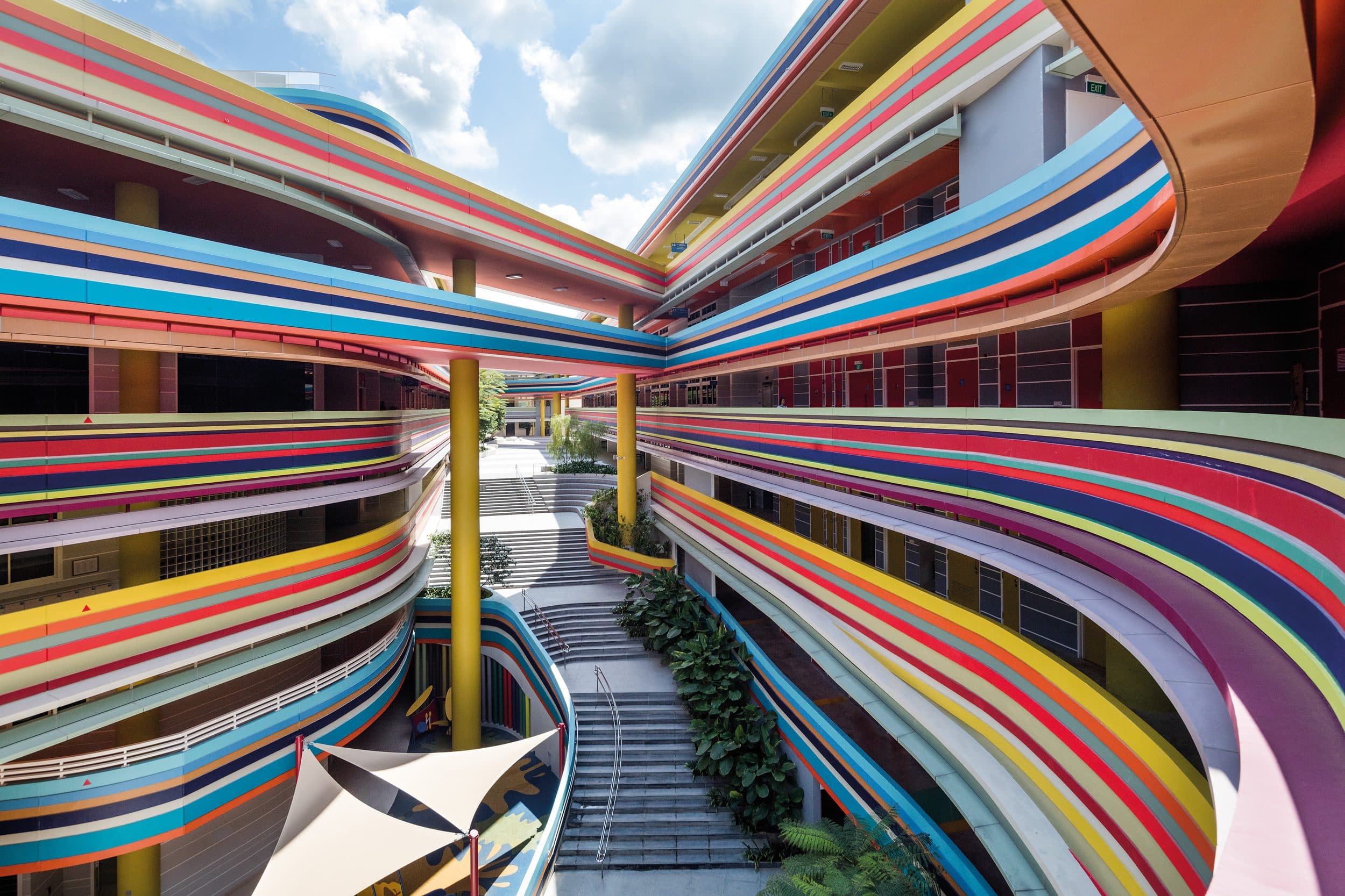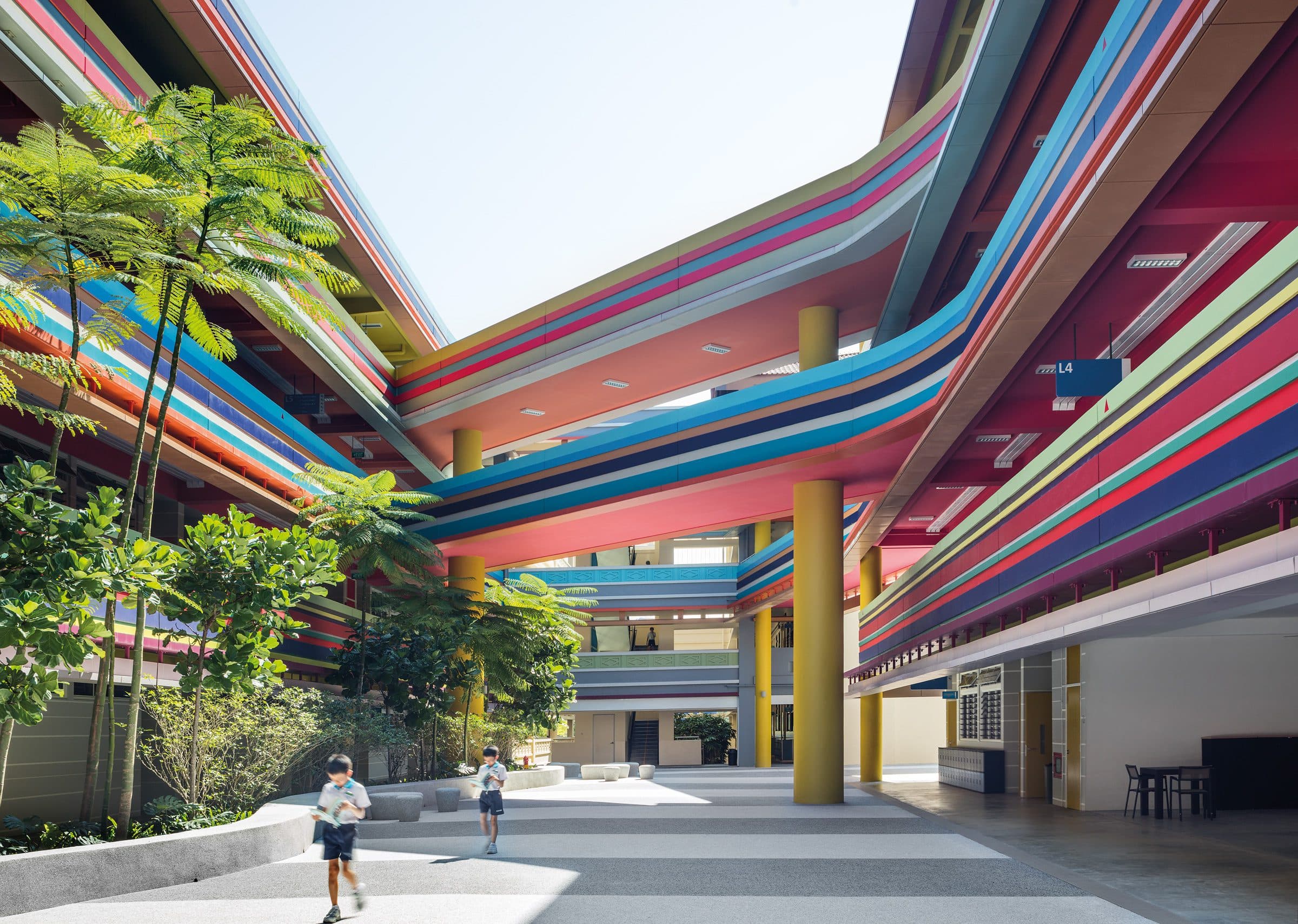 The extension to the existing Nanyang Primary School and Kindergarten in Singapore was designed around a large ‘internalised’ public Valley, open to the sky and the elements, but facing away from the residential streets surrounding the school. The design objective was to place the school’s communal space at the heart of the design.
