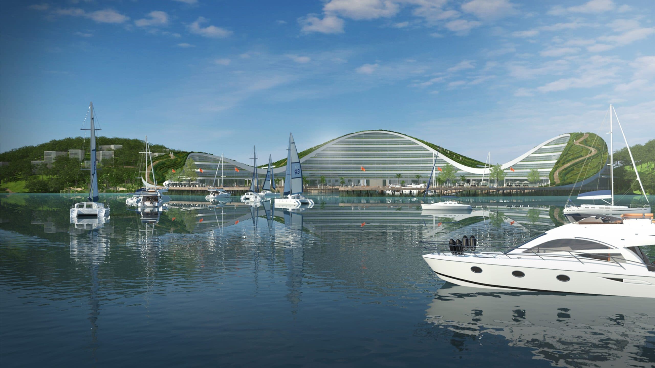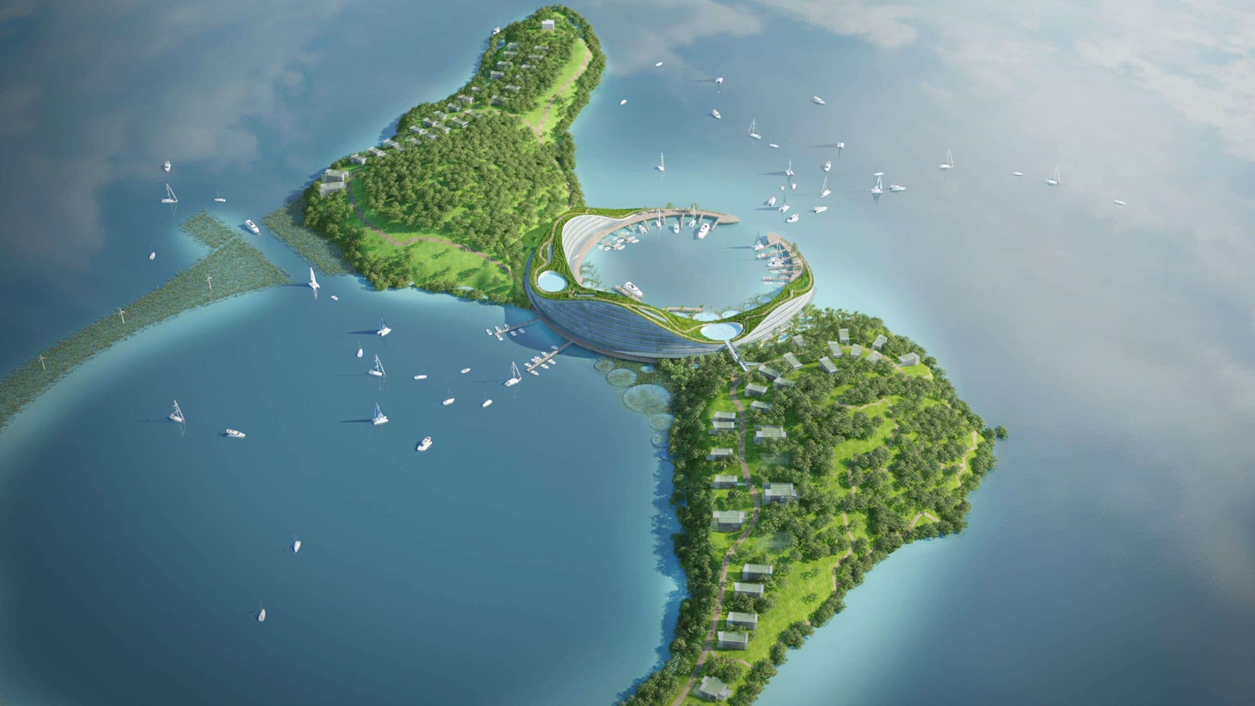 Một khu nghỉ dưỡng sinh thái bền vững của Công ty Bất động sản Taihu Bay, Trung Quốc. Nằm trên Đảo Jiaoshan, dự án phát triển đại diện cho cơ hội độc đáo cho người dân Giang Tô. Phát triển một khu nghỉ dưỡng bền vững, Carbon-neutral và Net energy zero (Tự cung cấp năng lượng) tại khu vực dự án nói riêng đồng thời tập trung chú ý phát triển tạo cơ hội phục hồi vùng biển Thái Hồ nói chung sẽ giúp cải thiện sinh kế, sự giàu có và sức khỏe của cộng đồng và người dân xung quanh.