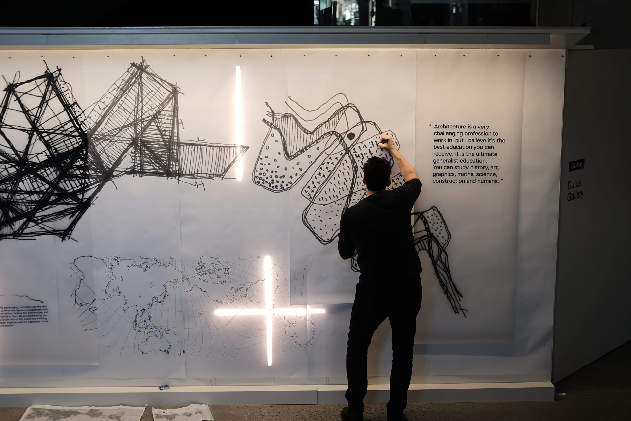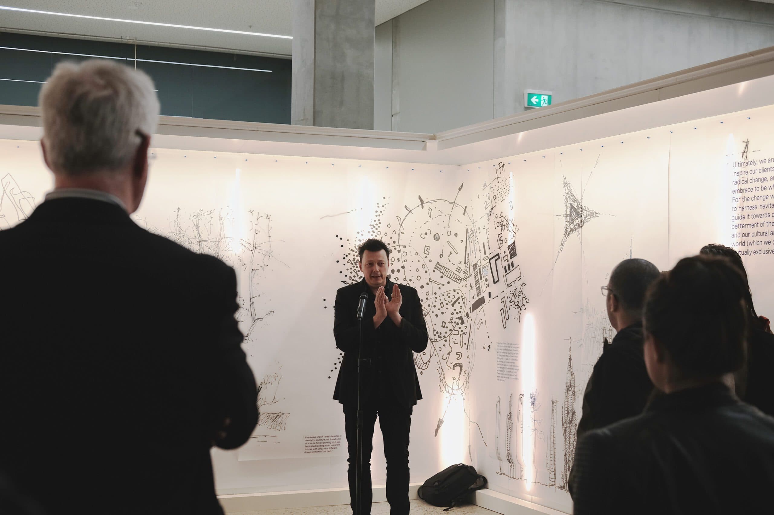 Là một phần tiếp diễn của Trường Thiết Kế Melbourne bao gồm ‘Chuỗi khảo sát cựu sinh viên’ đang diễn ra, nhạc trưởng Decibel Architecture, ông Dylan Brady đã được tiếp cận để tổ chức một cuộc triển lãm hồi tưởng về sự nghiệp kiến trúc của ông cho đến nay. Sự kiện ‘Công việc: Đang tiến hành’ sẽ kể câu chuyện về Kiến trúc như một hành trình cơ bản được định hướng. Các điểm đến được nhận thức như nhà ở và tòa nhà chọc trời đơn giản chỉ là một trạm dừng trong câu chuyện, hay kể về đỉnh cao của sự điên rồ và khoảnh khắc tĩnh lặng trên cuộc hành trình liên tục. Triển lãm khám phá hành trình này thông qua một loạt các bản phác thảo kéo dài hai thập kỷ.
