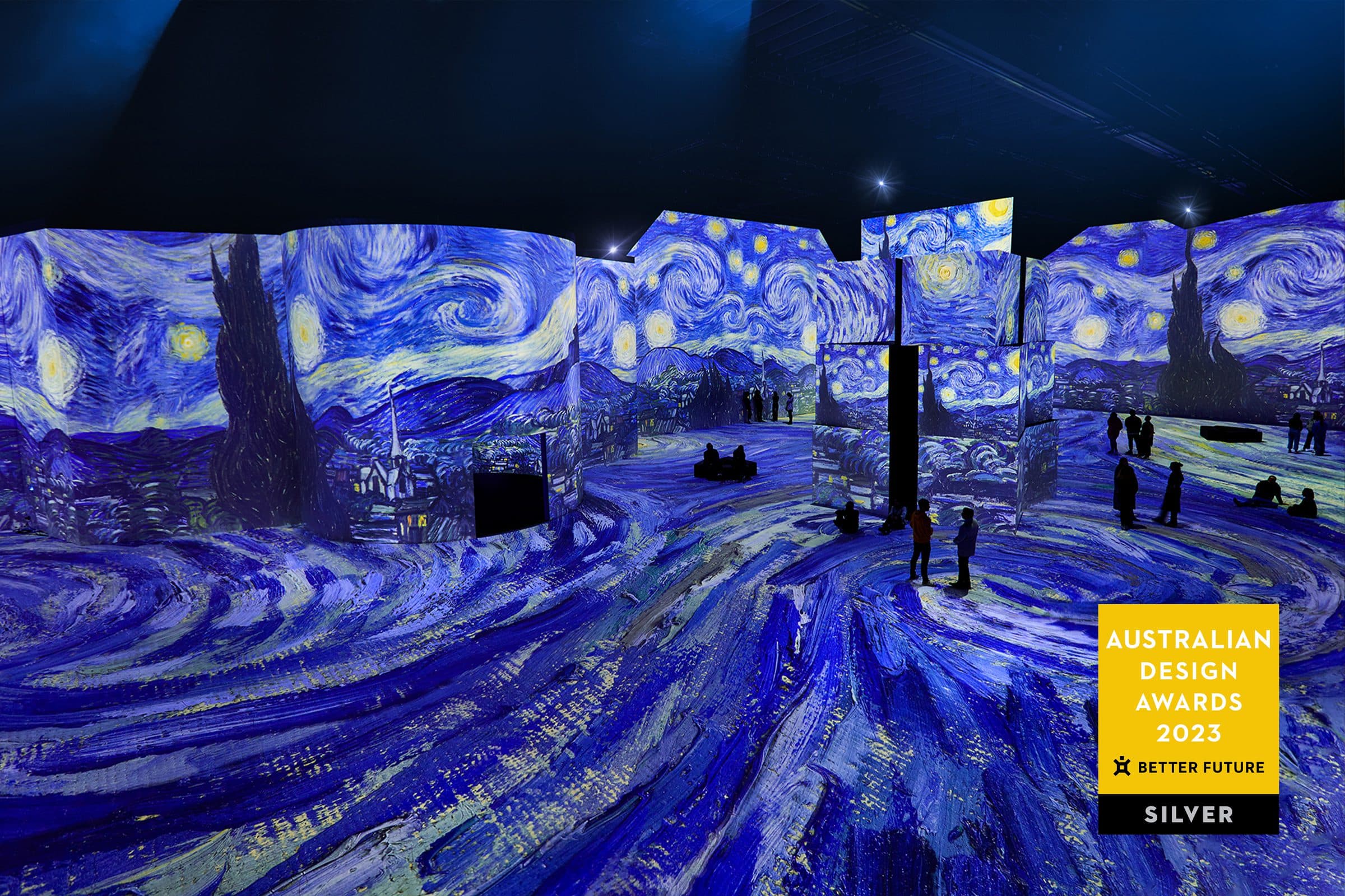 The LUME 墨尔本沉浸式光展获得了银奖 BETTER FUTURE Award Programs – Australian Design Awards 澳大利亚的快闪,展览和布置设计奖。
